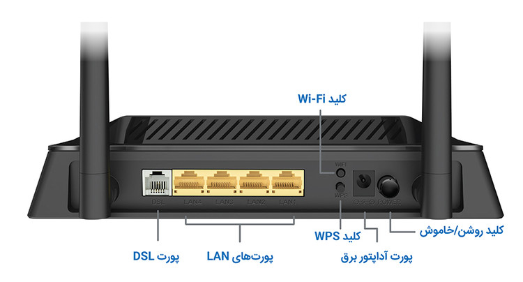 - 4 پورت پرسرعت LAN به منظور اتصال سیمی دستگاهها و بهرهگیری از اینترنت پر سرعت