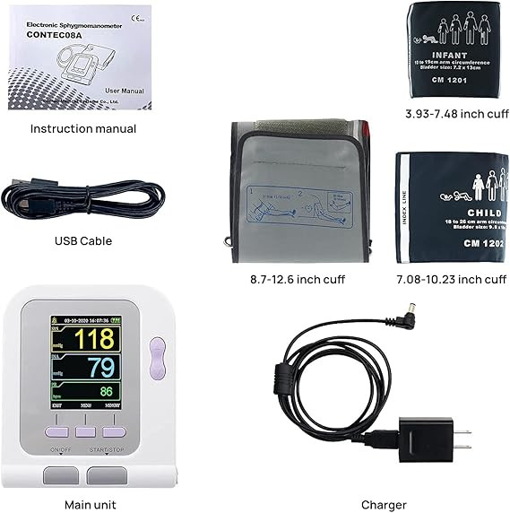 فشارسنج دیجیتال با پالس اکسیمتر CONTEC مدل 08A به همراه 3 عدد کاف فشارسنج ، 2 عدد پروب اکسیمتر دفترچه راهنما و کابل USB عرضه میگردد. این محصول مناسب استفاده نوزاد ، اطفال و بزرگسال میباشد. فشارسنج 2 در یک CONTEC مدل 08A با اندازه گیری فشارخون نوزاد ، اطفال و بزرگسال و حیوانات خانگی با کاف های سایز مختلف و ثبت در حافظه، با اتصال به رایانه خروجی نموداری را ارائه میدهد.