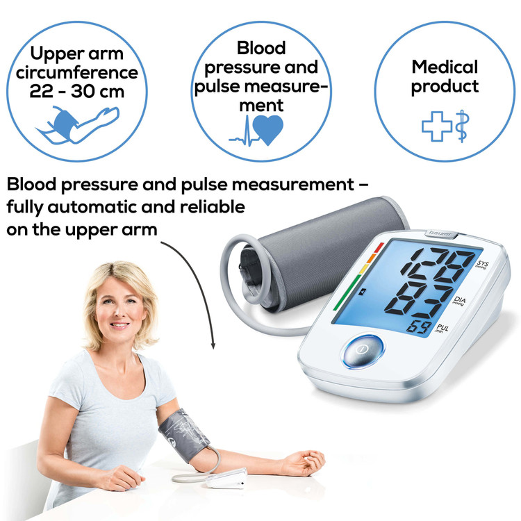 دستگاه سنجش فشار خون beurer مدل BM 44 دستگاهی پیشرفته و دقیق با نحوهی استفادهی بسیار آسان است. تمام افراد با هر سن میتوانند پس از آموزشی جزئی به راحتی و به طریقهی صحیح از این دستگاه استفاده کنند. بر خلاف دستگاههای مکانیکی برای استفاده از این دستگاه نیازی به گوشی پزشکی برای شنیدن پالسها نیست و فشار سیستولی و دیاستولی با دقتی بالا روی صفحه نمایش دستگاه نشان داده میشود. بستن بازو بند این دستگاه و فشردن تنها یک دکمه، تنها کاری است که کاربر باید انجام دهد.