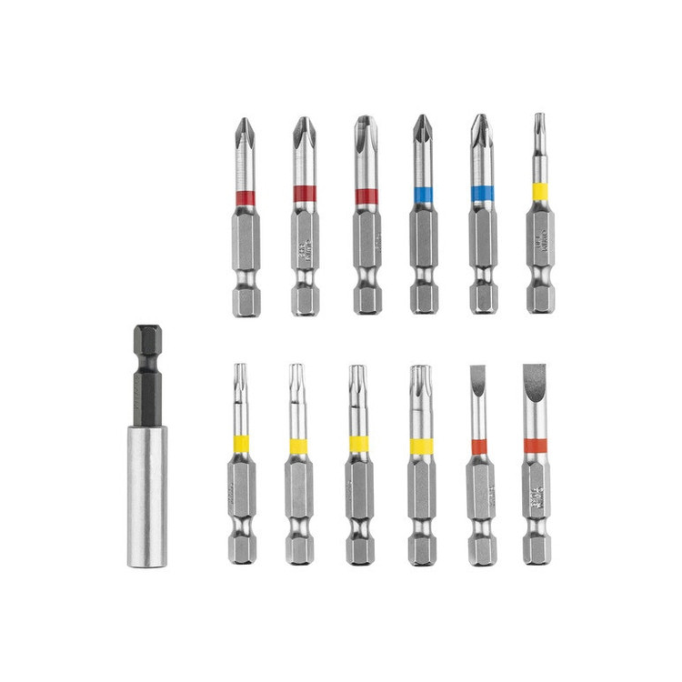 مجموعه مته، ۱۳ قطعهای ۱۲ سرپیچ (با کد رنگی) ۱ عدد نگهدارنده مته مغناطیسی مجموعه ۱۳ قطعهای جنس فولاد؛ فولاد کربنی