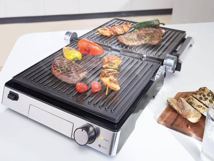 با ۳ عملکرد: - گریل تماسی - گریل پانینی - گریل رومیزی (۱۸۰ درجه باز میشود)