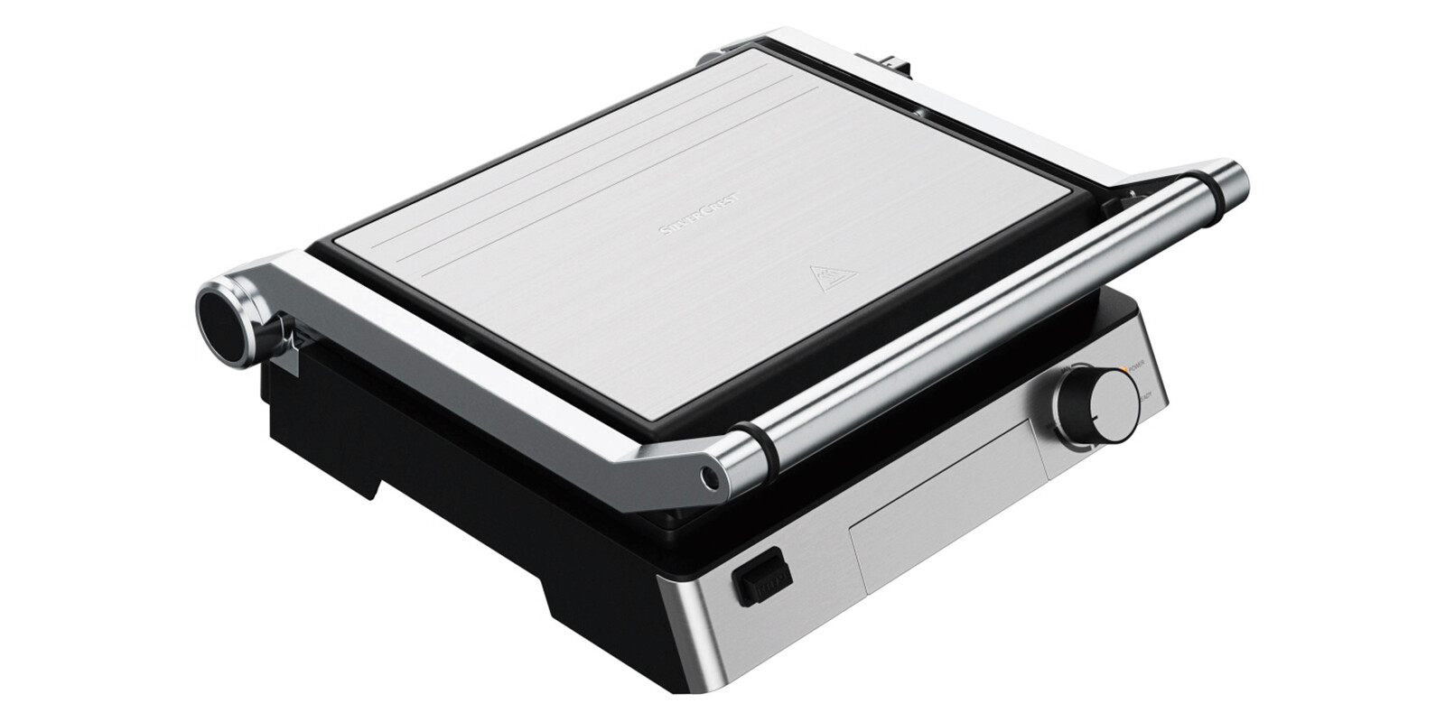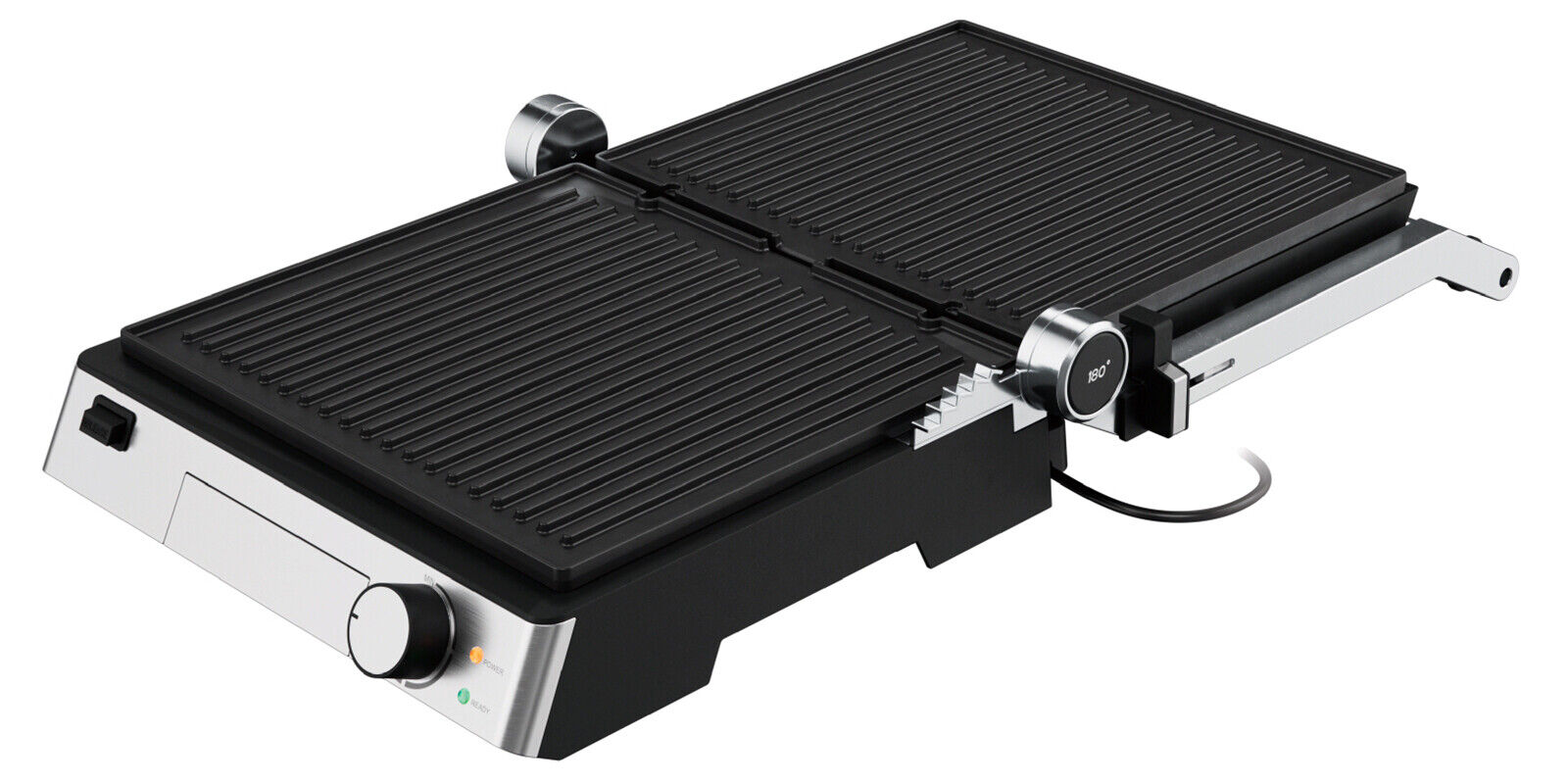 با ۳ عملکرد: - گریل تماسی - گریل پانینی - گریل رومیزی (۱۸۰ درجه باز میشود)